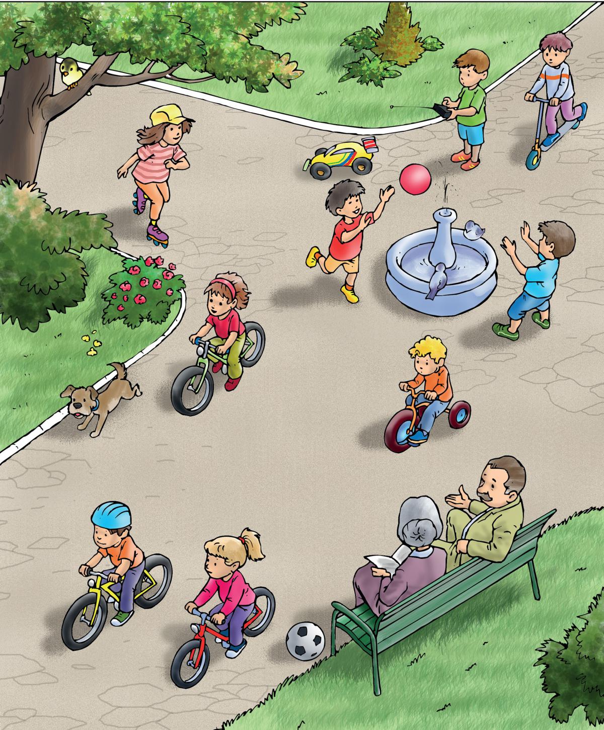 Другари, сви ми волимо да возимо бицикл. Док не напунимо девет година, бицикл смемо да возимо само на местима за игру: у школском дворишту, парковима и игралиштима.